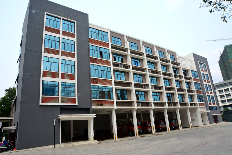 該項目于2014年9月30日進場施工,于2015年7月底竣工全部交付使用。銀凱戰(zhàn)勤保障消防站項目屬于園區(qū)基礎設施,其中有戰(zhàn)勤保障樓、特勤消防樓和訓練塔樓,同時配套相應的籃球場、圍墻、大門、綠化等設施,建成后有效提高園區(qū)的消防戰(zhàn)勤保障能力。