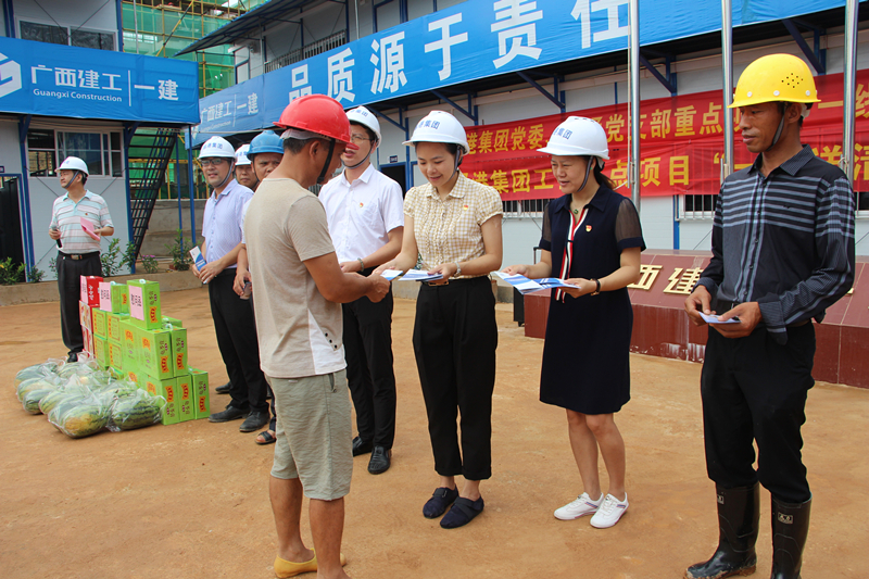 驕陽似火,酷暑難當(dāng)。隨著聒噪的蟬鳴,又迎來了今年的高溫季節(jié),為做好防暑降溫工作,保障重點(diǎn)工程和重點(diǎn)項(xiàng)目一線員工和項(xiàng)目建設(shè)者的健康權(quán)益,綠港集團(tuán)黨委和工會在7月4日分別來到綠港·云海灣、吳圩3號路、金凱工業(yè)園等9個重點(diǎn)項(xiàng)目和重點(diǎn)工程現(xiàn)場,為奮戰(zhàn)在一線的職工和項(xiàng)目建設(shè)者們送去了絲絲涼意,獻(xiàn)上了一份誠摯的關(guān)懷。