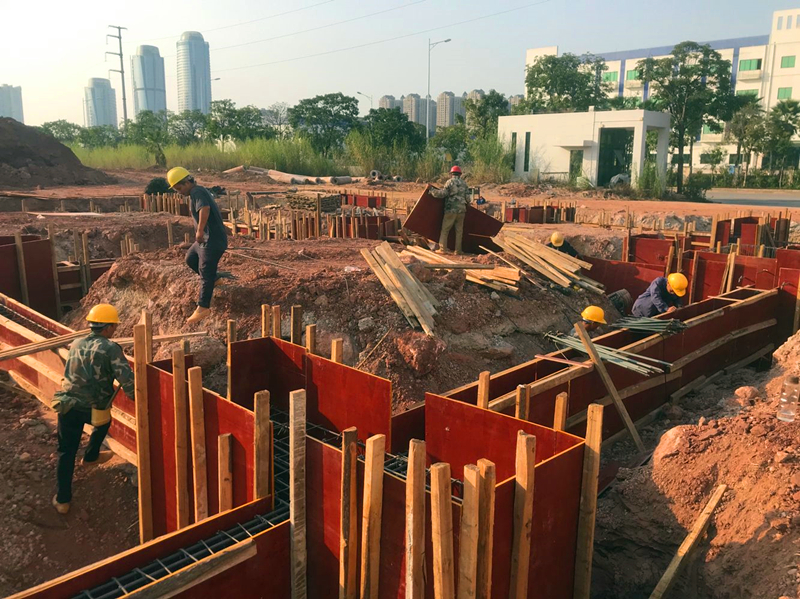 瑞聲南寧光學(xué)項(xiàng)目主產(chǎn)高精密手機(jī)鏡頭,包括一體式VCM雙攝、晶圓級玻璃(WLG)鏡頭、玻塑混合鏡頭等,是瑞聲核心技術(shù)之一,項(xiàng)目的盡快投產(chǎn)對于瑞聲公司在美國打壓中國通訊產(chǎn)業(yè)的大環(huán)境下?lián)屨籍a(chǎn)業(yè)鏈轉(zhuǎn)移先機(jī),搶占市場份額;經(jīng)開區(qū)落實(shí)自治區(qū)強(qiáng)首府戰(zhàn)略、打造千億產(chǎn)業(yè)園等都有著十分重要的意義,是一個(gè)多贏格局。項(xiàng)目計(jì)劃2020年2月上旬正式投產(chǎn)。榮鑫公司在該項(xiàng)目中主要承擔(dān)附屬工程施工,包括設(shè)備用房、污水處理廠房、危品庫、空壓機(jī)房主體施工及園區(qū)道路、綠化等,是名符其實(shí)的配角,但在項(xiàng)目的前期階段,聚光燈卻始終照在這“配角”的身上。附屬工程中,設(shè)備用房、污水處理廠房等建筑面積共4000平方米,是項(xiàng)目裝修、安裝的基礎(chǔ)工程,投產(chǎn)倒排工期要求2019年12月25日前必須完成并交付安裝單位(道路綠化等配合項(xiàng)目總進(jìn)度,不在此列),工期不足三個(gè)月!該部分用房面積雖不大,且大部分只有兩層,但由于特殊設(shè)計(jì)要求且項(xiàng)目處回填區(qū)域,涉及樁基、深基坑(5.5米)、高支模(8.3米)、防滲防腐等土建施工難點(diǎn)、費(fèi)時(shí)點(diǎn),不可控因素多,給工程按期完工帶來了極大的困難。該部分項(xiàng)目工程量不大,與后期裝修、安裝關(guān)系密切,本應(yīng)由裝修總包單位統(tǒng)一施工,但裝修單位一再推托,坦言不可能完成。最終管委將此部分項(xiàng)目授與了榮鑫公司。此時(shí),裝修、安裝單位在觀望,業(yè)主、建設(shè)主管部門也都在捏把汗。