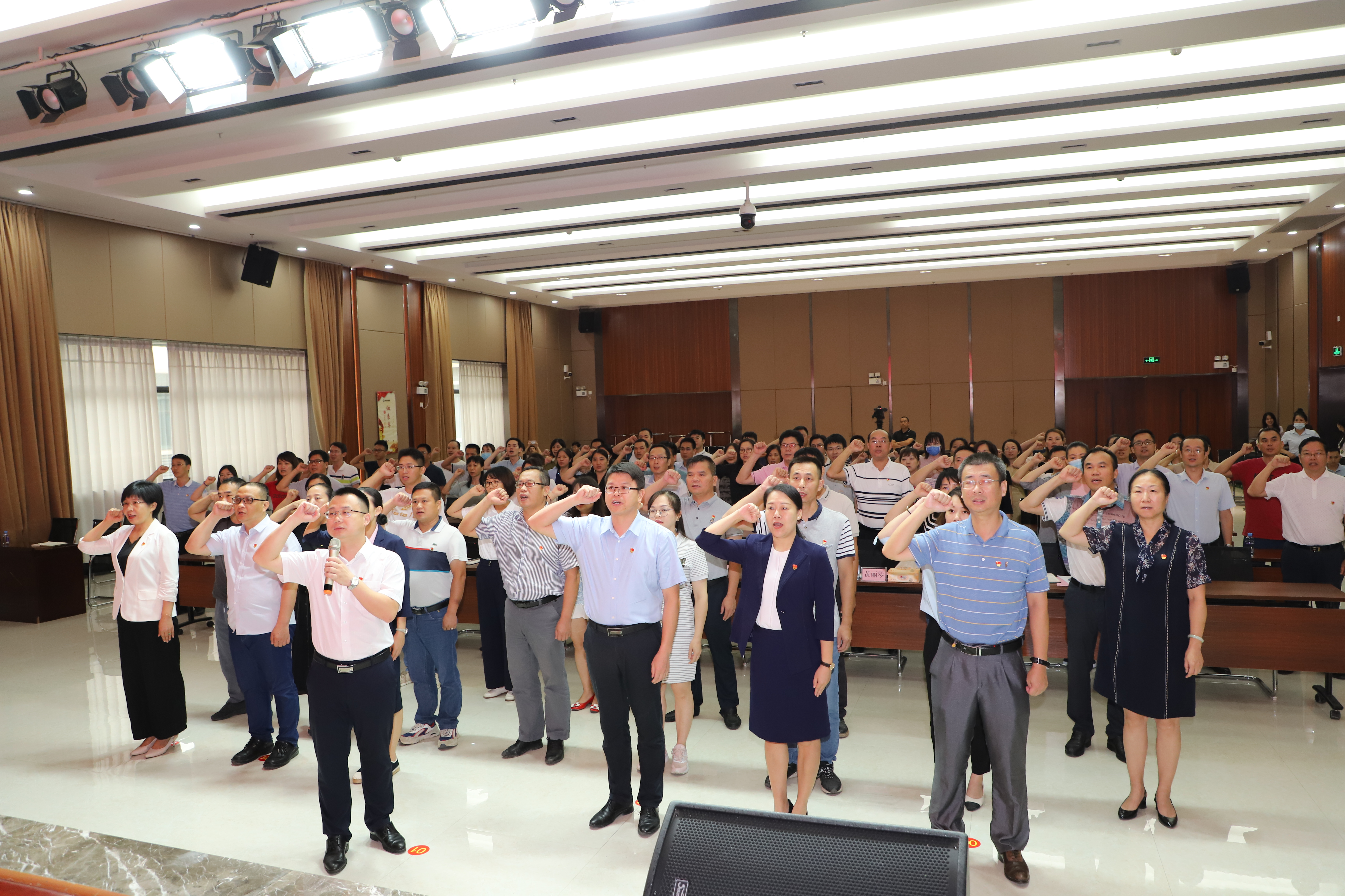 “我志愿加入中國共產(chǎn)黨,擁護(hù)黨的綱領(lǐng),遵守黨的章程,履行黨員義務(wù)……”迎著黨旗、舉起右拳,在集團(tuán)黨委書記、董事長(zhǎng)龔國強(qiáng)的帶領(lǐng)下,綠港集團(tuán)7名新入黨黨員莊嚴(yán)地宣讀了入黨誓詞、98名老黨員同志重溫了入黨誓詞,大家在入黨誓詞中回顧初心,銘記宗旨,接受了一次心靈的洗禮。
