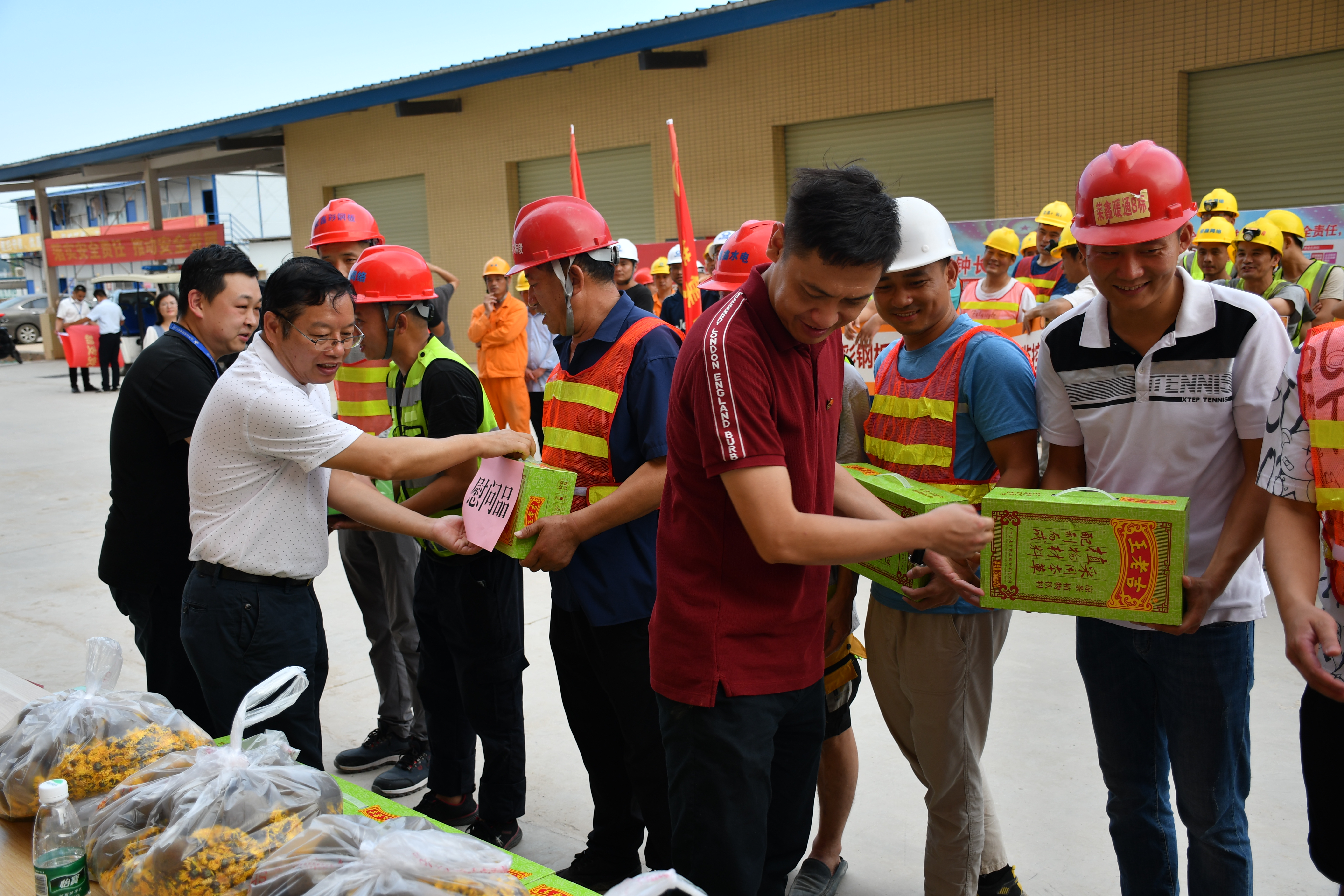 榮鑫公司領(lǐng)導(dǎo)班子與瑞聲公司副總經(jīng)理李博一起為一線勞動(dòng)者送上清涼慰問品