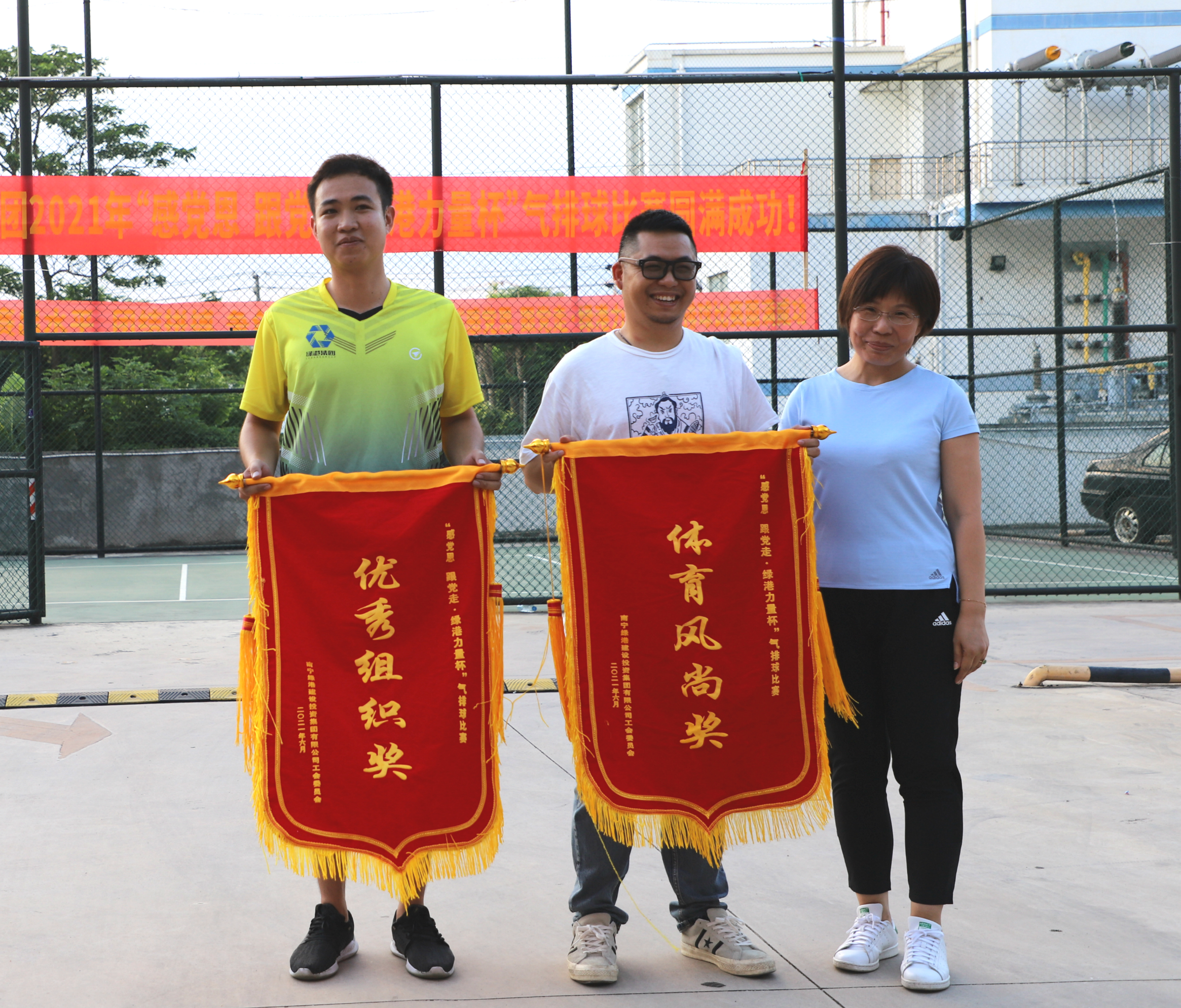 綠港集團財務(wù)總監(jiān)關(guān)月娥為獲得體育風(fēng)尚獎、優(yōu)秀組織獎隊伍頒獎
