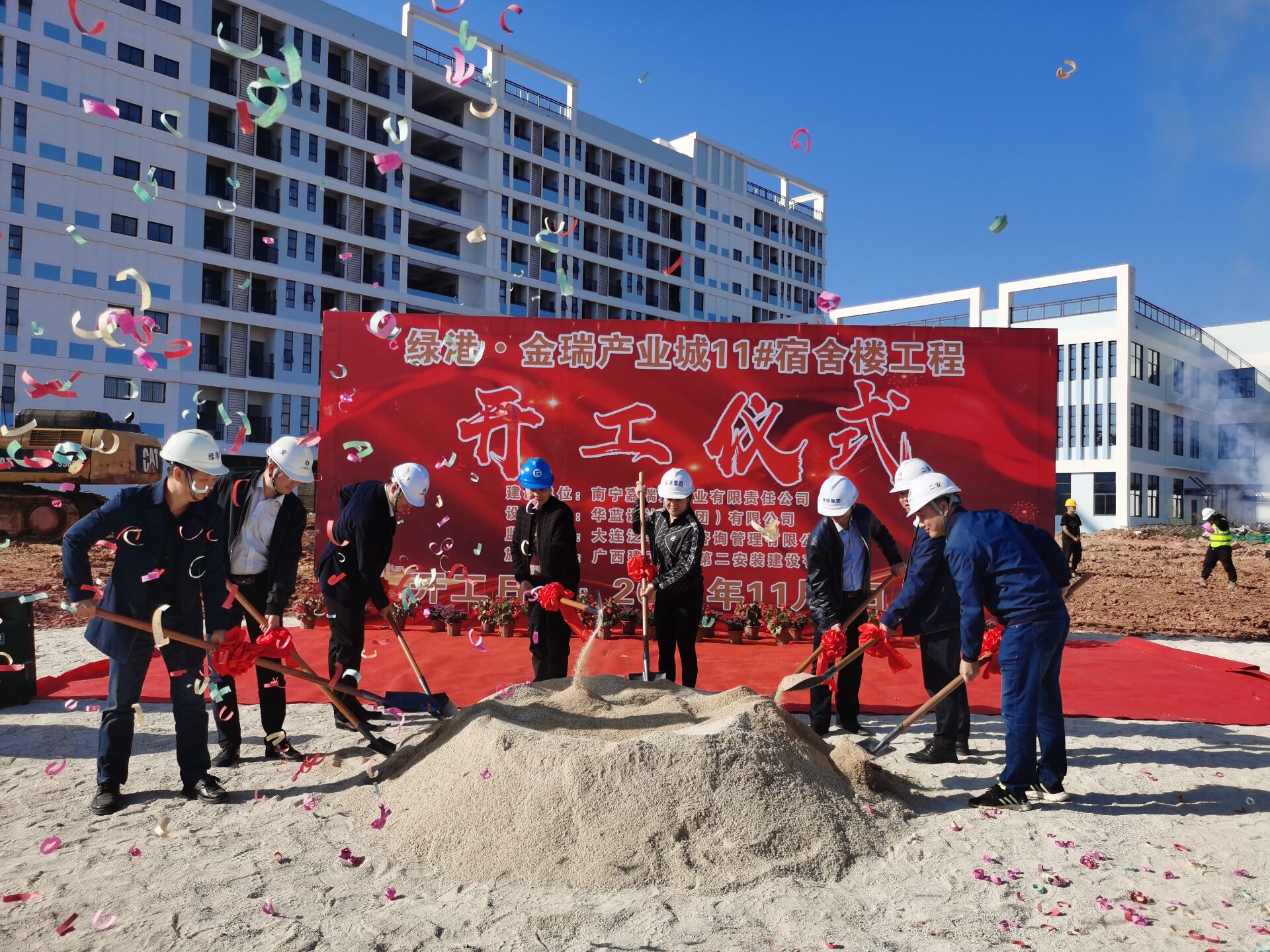 綠港·金瑞產(chǎn)業(yè)城項(xiàng)目位于南寧經(jīng)開區(qū)高嶺路南側(cè)、金陽路西側(cè),占地245畝,總建筑面積406039.74㎡,總投資約13億元。項(xiàng)目包括17個單體建筑,分三期建設(shè),一期約6.1萬㎡;二期約14.8萬㎡;三期約19.7萬㎡。目前,項(xiàng)目一、二期工程正如火如荼建設(shè)中,一期工程除16#污水處理廠房外,其他全部單體已拆除外架,計劃于2021年12月完工;二期工程全部單體將于11月完成主體封頂,計劃在2022年1月完工。本次開工建設(shè)的11#宿舍樓工程擬建設(shè)1棟9層宿舍樓及其他附屬配套設(shè)施,建筑面積18129.06㎡,計劃于2022年10月交付。