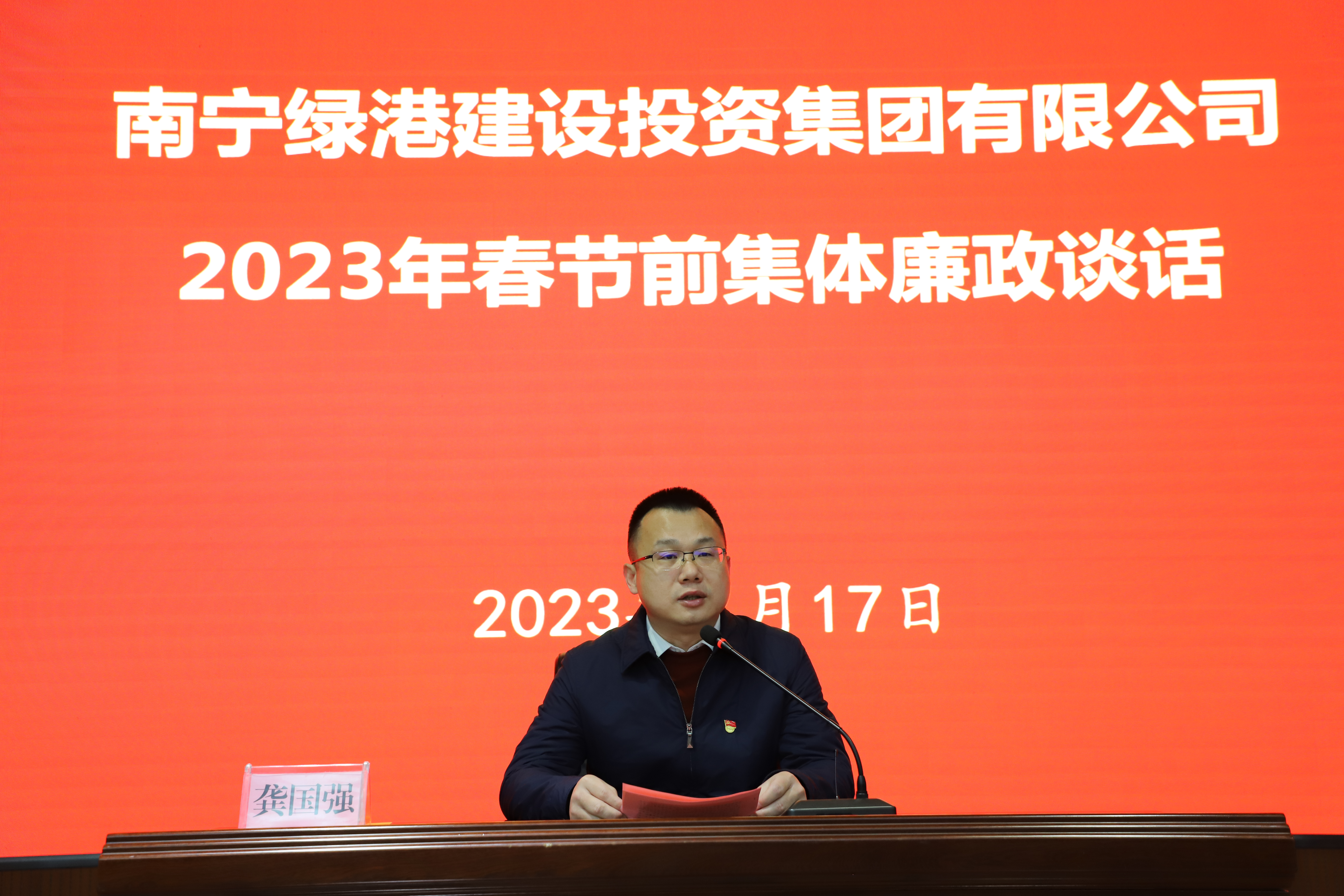 “希望大家帶頭落實中央八項規(guī)定及其實施細(xì)則精神,嚴(yán)格遵守廉潔自律各項規(guī)定和八嚴(yán)禁紀(jì)律要求......”1月17日,為進一步嚴(yán)明紀(jì)律要求,強化正風(fēng)肅紀(jì),確保風(fēng)清氣正過節(jié),綠港集團黨委組織召開2023年春節(jié)前廉政集體談話會,為干部職工送上了一道精心定制的節(jié)前廉潔“開胃菜”綠港集團黨委書記、董事長龔國強出席會議并講話,集團領(lǐng)導(dǎo)班子全體成員,集團公司各部門及各子公司全體干部職工參加會議。